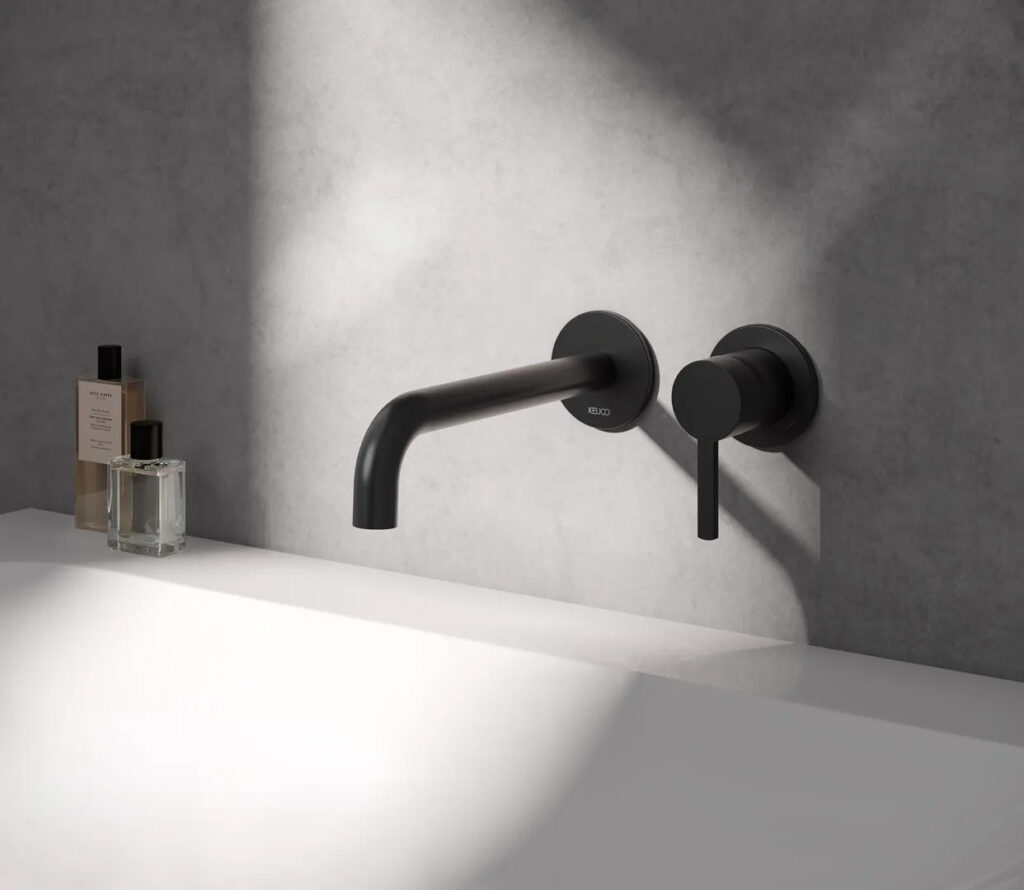 Die KEUCO Serie PLAN zeichnet sich durch das vielseitige und umfangreiche Sortiment aus.  Die PLAN blue Armaturen sind mit ihrem universellen Design in zahlreichen Badeinrichtungen einsetzbar und fügen sich in die stilsichere Raumarchitektur ein. Mit der PLAN blue Wandauslaufarmatur für den Waschtisch wird das Armaturen-Sortiment um eine designstarke Komponente erweitert. Aus massivem Edelstahl oder aus Messing mit Oberflächen in Chrom, Aluminium-finish und Schwarz matt sind die Gestaltungsmöglichkeiten, besonders in Kombination mit den vielen Accessoires der Serie PLAN, groß.